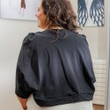 Grâce à sa coupe courte, il met joliment en valeur la taille tout en ajoutant une touche confortable et décontractée à votre tenue. Ses manches courtes légèrement froncées à l’épaule apportent une note de douceur et de volume discret.