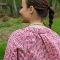 Ce patron polyvalent vous permet d'opter pour des tissus légers ou de poids moyen, tels que le voile de coton, la double gaze, la broderie anglaise ou le crêpe de viscose. Rehaussez l'encolure en ajoutant un passepoil pour une touche supplémentaire d'élégance.