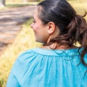 Estelle, c'est le patron d'une tunique bohème chic à manches raglan. Elle a une encolure ronde et froncée avec une fente milieu devant. Le bas de la tunique a une forme "liquette".
