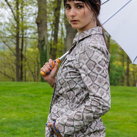 La saharienne Narcisse est la veste de mi-saison. Sur une jupe ou un pantalon, elle accompagnera votre printemps avec décontraction.