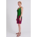 Axelle is a fitted, sleeveless dress available in two lengths: above the knee (47 cm below the waist) or long with a front slit on the right leg. The V neckline in front enhances the silhouette, while the back offers two styles: a classic V back or an elegant backless crossover design.
