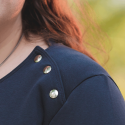 Ellie is a sweatshirt sewing pattern with ribbing finishes. A classic revisited with shoulder button details — the perfect touch to let your creativity shine!