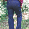 Discover the Philippine sewing pattern, a high-waisted design available as either pants or shorts, blending vintage charm with modern style. With its flare leg shape, jeans-style back yoke, and front and back patch pockets, this model channels a strong 70s vibe while remaining contemporary and versatile.